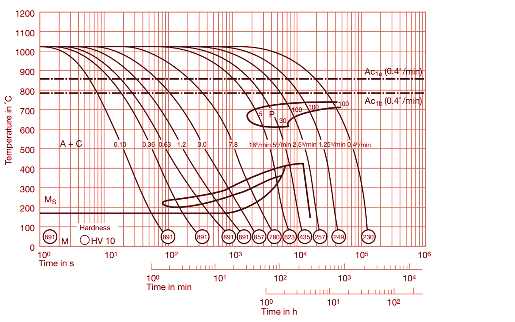Time-temperature transformation diagram Hardening temperature: 1030 °C