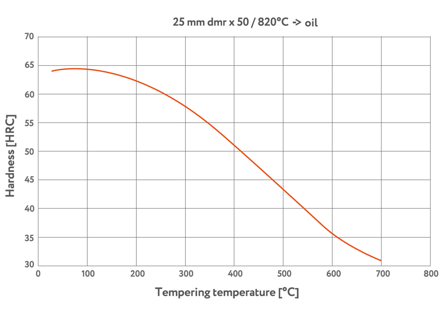 Medium alloyed cold work steel with good hardening capacity, high wear resistance, dimensionally stable during heat treatment. Its applications are small tools for cutting and punching, shear knives, thread rolling tools, measuring tools, wood working tools.