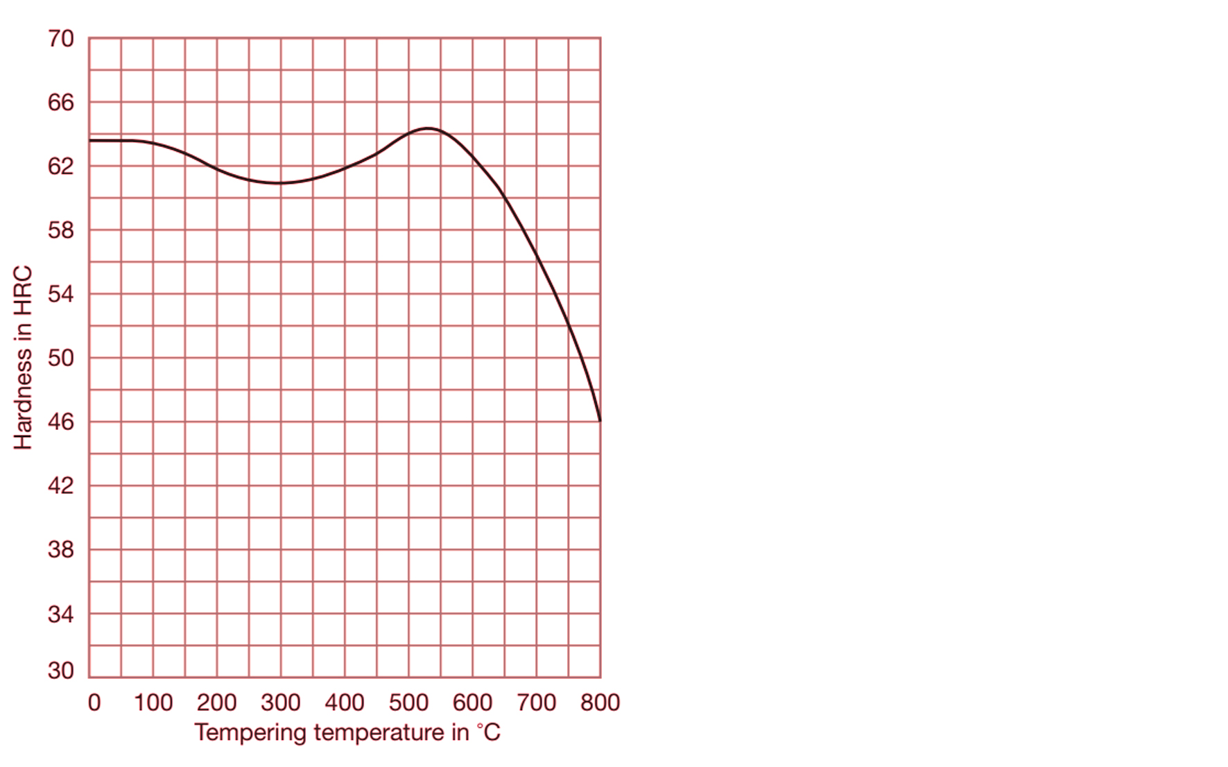 For cold-forming tools with a complex geometry, a hardening temperature at the lower end of the quoted range is recommended. The stated hardening temperatures apply to saltbath hardening only. For vacuum hardening, we suggest a reduction of 10 °C to 30 °C.