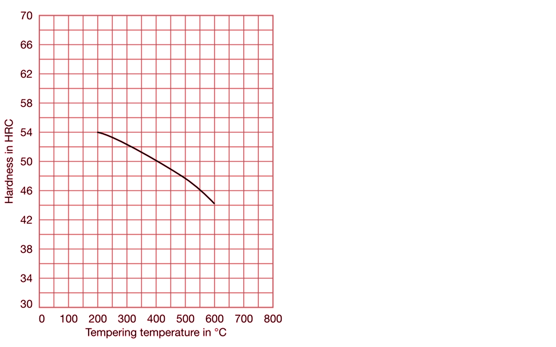 | Hardening | Heat to 880 – 920 °C | Min. H.T. for 1 minute /mm | Air, oil or hot bath, 200 – 250 °C | 53 – 55 | |