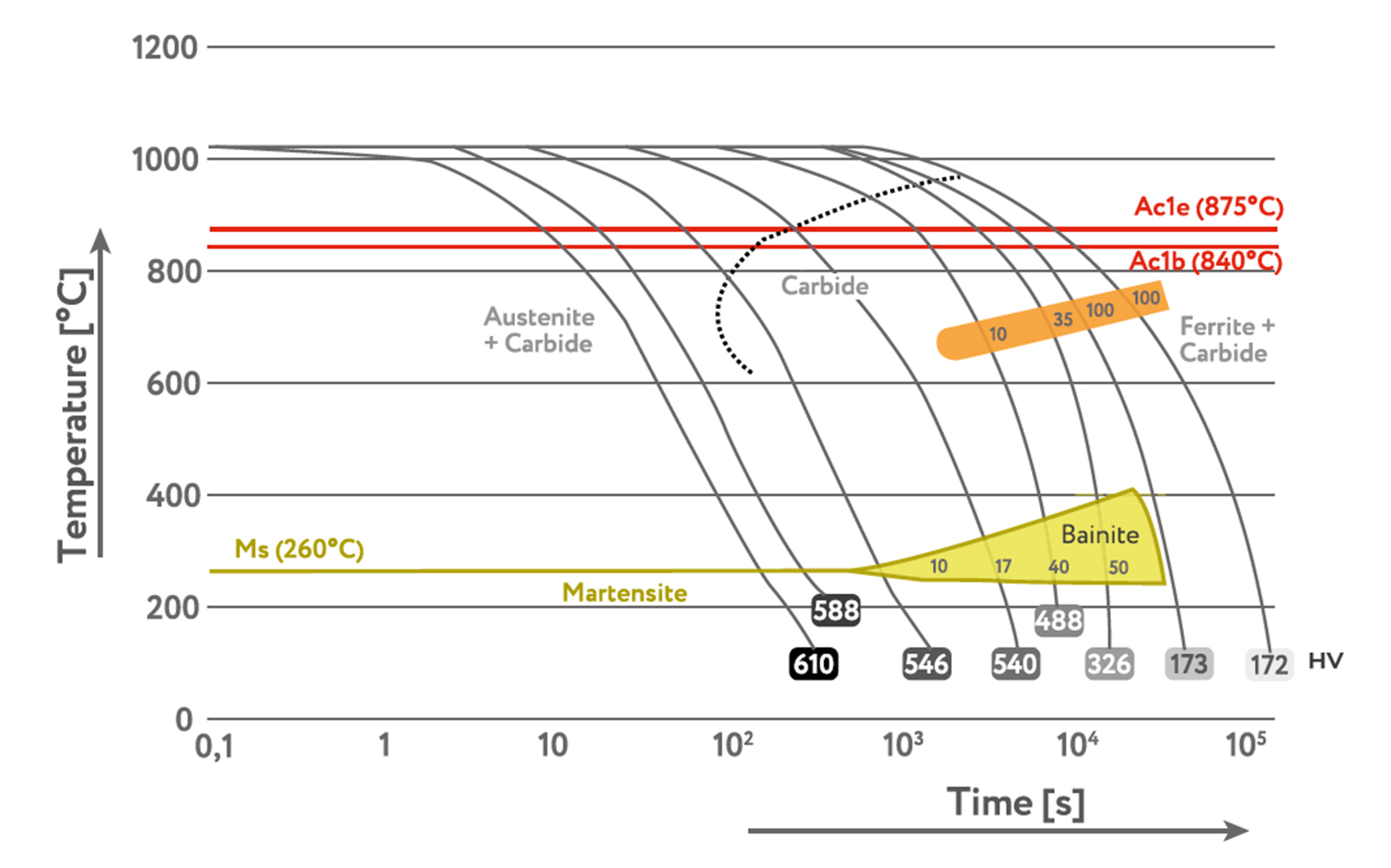 Steel can be air hardened or pressure gas (vacuum) which makes it possible to reduce distortion and cracks caused by heat treatment.
