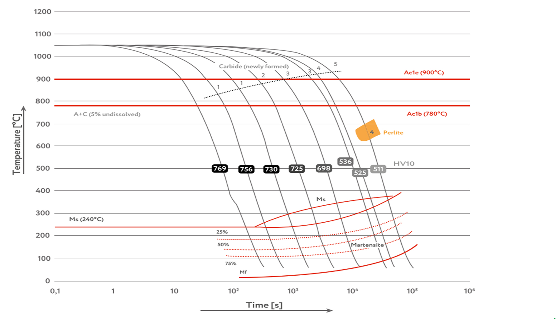 | Hardening | Preheating to 600-700°C Austenitizing to 1000 - 1050 °C | Min. H.T. for 1 minute /mm | Polymer or gas air | Qunched hardness 50 HRC | |