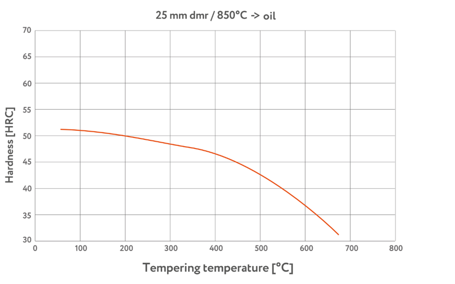 | Tempering | In the range 550 – 600°C | Min. H.T. for 3 minute /mm | Air or furnace | To be carried out after hardening. 2nd Tempering must be performed to max 30°C below tempering temperature | |