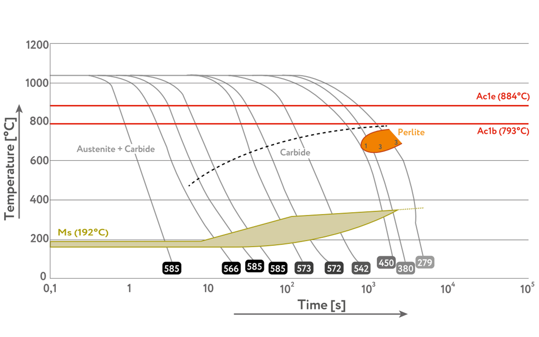 | Annealing | Heat to 850 - 880 °C | Min. H.T. for 2 minute /mm | Air or furnace | In order to obtain hardness lower than 250 HB ( 24 HRC) to improve machinability | |
