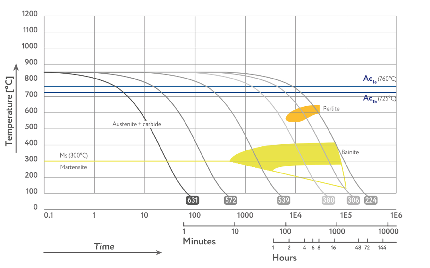 | Annealing | Heat to 650 - 700 °C | Min. H.T. for 2 minute /mm | Air or furnace | In order to obtain hardness lower than 250 HB ( 24 HRC) to improve machinability | |